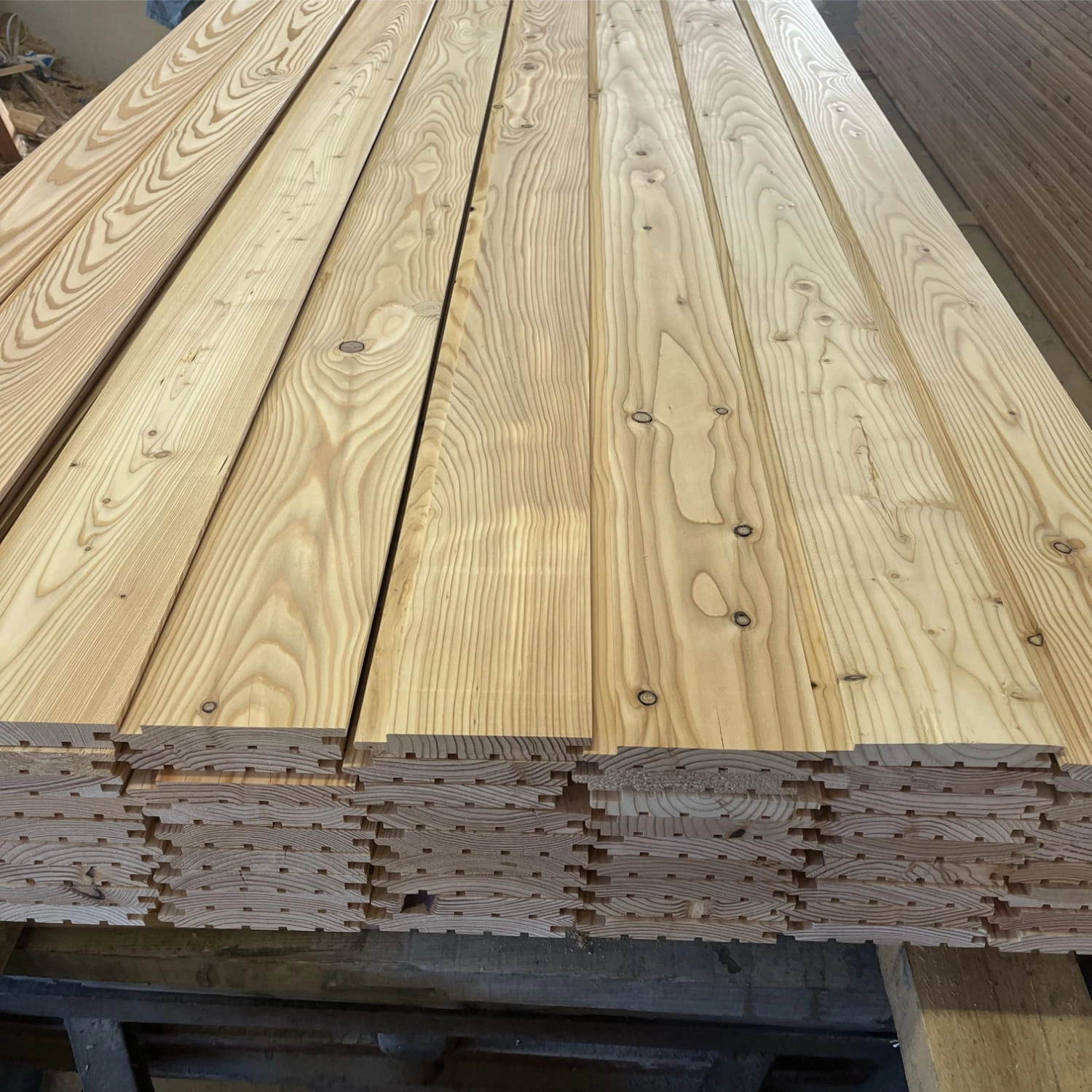 Deski wykonane z modrzewia europejskiego łączą w sobie wyjątkową estetykę naturalnego drewna z wysoką trwałością. Modrzew to jeden z najbardziej odpornych gatunków drewna. Doskonale znosi warunki zewnętrzne, wilgoć i zmienne temperatury, zachowując przy tym elegancki wygląd przez długie lata. Dzięki profilowi pióro-wpust deski idealnie do siebie przylegają, tworząc równą, estetyczną powierzchnię.