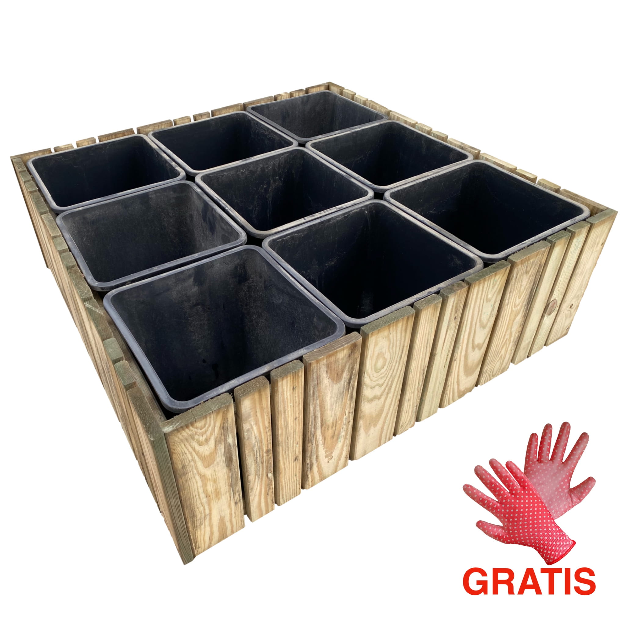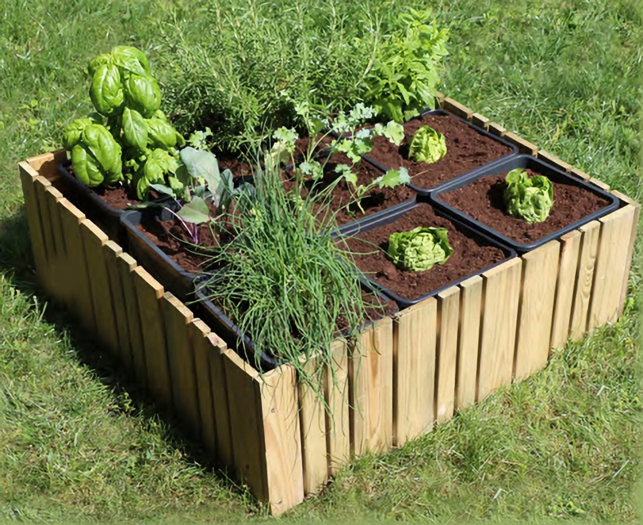 Warzywnik drewniany to idealne rozwiązanie do uprawy roślin na małej powierzchni. Zielnik łączy w sobie nowoczesny wygląd i praktyczność. Konstrukcja jest szybka i prosta w montażu. 9 plastikowych donic pozwala na uprawę różnych rodzajów owoców i warzyw. W podwyższonych grządkach podłoże krócej się nagrzewa i ma większą wilgotność, dzięki temu uprawy rosną szybciej. Wymiar zewnętrzny warzywnika wynosi 80 x 80 cm, wysokość 29,5 cm. Zielnik zrobiony jest z drewna sosnowego, zaimpregnowanego ciśnieniowo, odpornego na warunki atmosferyczne i szkodniki.
