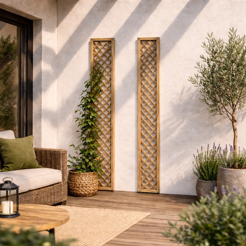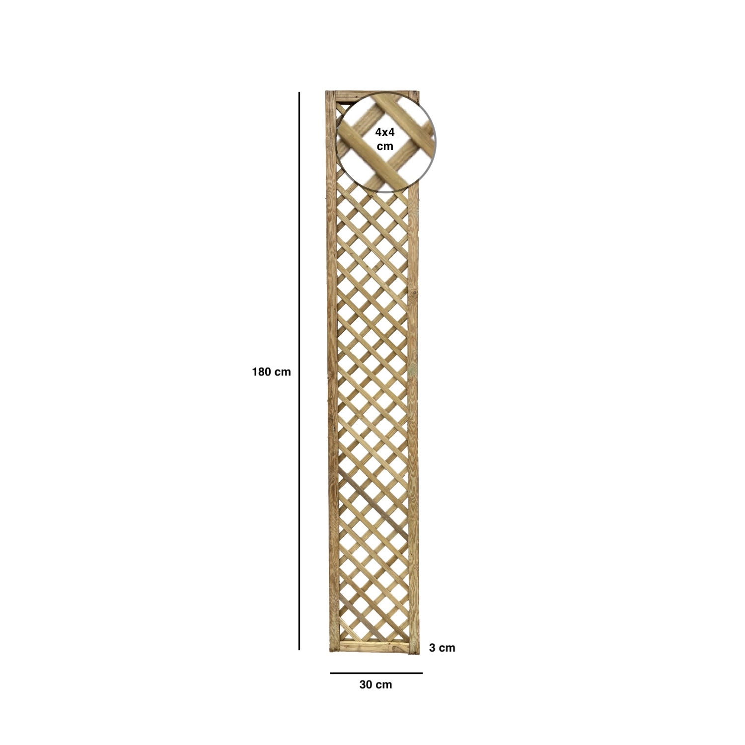 Drewniana kratka ogrodowa w ramie o wymiarach 30x180 cm to praktyczne i estetyczne rozwiązanie do ogrodu, na balkon lub taras. Oczko 4x4 cm zapewnia stabilne podparcie dla roślin pnących, wspierając ich prawidłowy wzrost i rozprowadzanie. Solidna konstrukcja w ramie zwiększa trwałość oraz ułatwia montaż przy ścianie, ogrodzeniu lub altanie. Naturalny wygląd drewna doskonale komponuje się z zielenią, pełniąc jednocześnie funkcję dekoracyjną.
